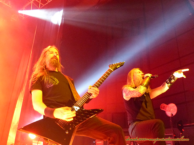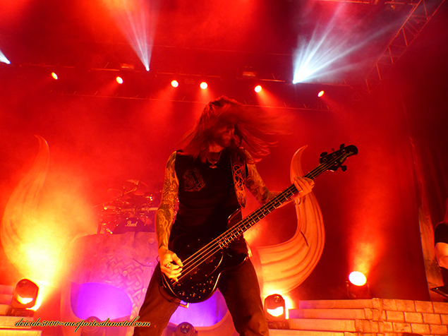 Bon, c’est super rodé. Tous les soirs, c’est la même setlist, donc ça s’enchaîne super bien. Johan Hegg (chant) s’adresse très facilement à la foule en Français. Ca va un peu au-delà du “merci beaucoup”. Ce groupe bénéficie d’un capital sympathie visible.