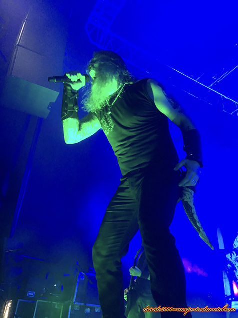 Le show est très lourd en projection d’images sur écran géant. C'est fait façon lyrics video ou simple projection de visuels. Est-ce qu'au final cela ne nuit pas un peu au show ? L’éclairage des artistes est plutôt sombre, sans doute pour que les écrans ressortent bien. Mais je ne trouve pas ça bien au final. On a déjà vu d’autres groupes capables de marier les deux. Je n’avais pas écouté Atoma (2016) et je découvre avec plaisir des capacités vocales nouvelles avec du chant clair. Cet album tient le haut du pavé avec quatre chansons (seulement) sur le set de ce soir. Mention spéciale à Mikael Stanne pour sa sur-présence scénique.