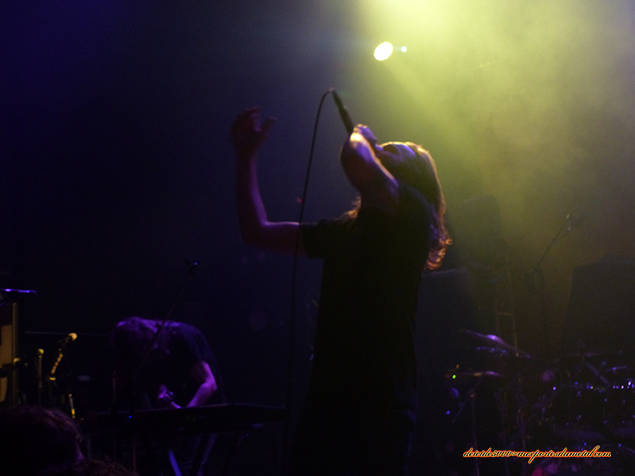 Le groupe enchaine avec The Coma Machine extrait de l'excellent Coma Eclipse, titre plus aéré qui fait preuve de sa capacité à créer des mélodies aussi bien que des passages plus rapides et intenses. Le chanteur est coincé derrière son clavier mais essaie de faire réagir le public, en décrochant son micro et venant se placer devant la scène pour haranguer un public bordelais comme souvent bien sage... Il est clair que la vision de la musique de BTBAM ne permet pas forcément d'aller lâcher les chevaux dans un pogo endiablé. L'ambiance est studieuse et chacun apprécie la prestation mais une question me vient à l'esprit à ce moment du concert : Concert ou masterclass ?