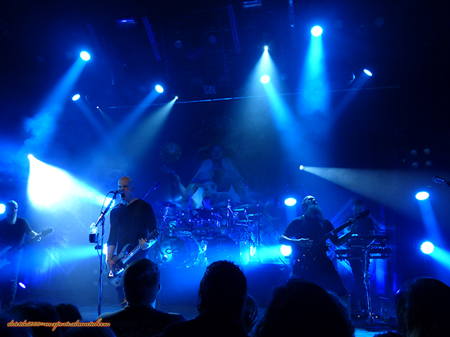 Leprous commence à l'heure et il est nécessaire de se hâter pour ne pas en manquer une miette. Et première surprise de la soirée, l'ensemble des trois configurations scéniques est en place, batterie y compris, ce qui laisse assez peu d'espace au groupe pour s'exprimer physiquement. Un choix efficace pour les changements de plateaux mais qui dessert le jeu de scène des musiciens. Honnêtement, je n'avais jamais entendu parler de Leprous, c'est donc une découverte totale me concernant. On les sent bien attendus par une frange du public qui les soutiendra tout au long de la grosse demi-heure de concert. Le groupe existe depuis plus de quinze ans, il n'y a donc rien d'étonnant à ce que ces Norvégiens aient drainé un bon nombre d'adeptes ce soir.