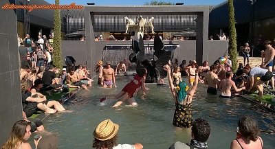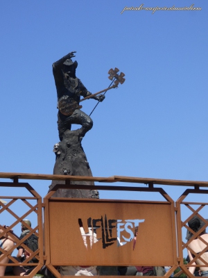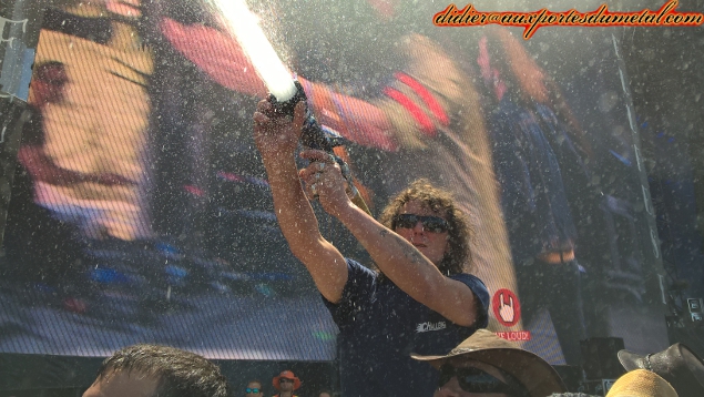 Avec la pression gare aux éclaboussures ! Peut-être faudrait-il prévoir, (avec le réchauffement climatique ?) d'arroser un peu l'herbe devant les Mainstages pendant la nuit ? Qui dit grosse chaleur, dit grosse soif. 350 000 litres de bière consommés par 150 000 spectateurs, ça fait quand même 1,4 millions de demis, soit 2,3 l par personne. Sachant que dans mon groupe de quatre, deux personnes n'en boivent pas, on comprend mieux l'état de certains autres. Et le dimanche, catastrophe, les déssoiffeurs (les gars qui circulent avec un bidon de bière dans le dos pour servir les feignasses qui n'arrivent plus à se trainer jusqu'au bar) sont tombés en rade de gobelets. La loose ! Un déssoiffeur sans gobelet, impensable dans un festival de metal, et pourtant, les températures extrêmes ont eu raison de leur stock de gobelets, heureusement qu'un vrai festivalier garde son verre, et surtout évite de le jeter dans la foule.