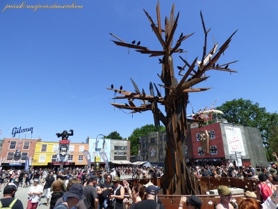Quand il se met à faire beau et chaud sur Clisson, c'est pas pour rigoler. Cette année les points d'eau sont très nombreux, et placés à des endroits stratégiques et pratiques. Par exemple il y a des toilettes avec point d'eau tout proches de la mainstage. Idéal pour aller remplir une bouteille d'eau, ou bien se passer la tête sous l'eau. Je remarque aussi qu'outre les urinoirs, les toilettes sont devenus mixtes, finies les files interminables pour ces dames. Pour contrer la chaleur, il a aussi été créé une zone ombragée équipée de brumisateurs, vers la Warzone.