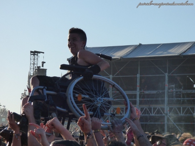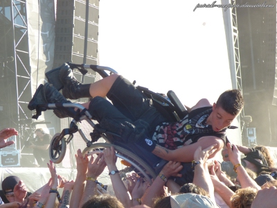 Pour les PMR (Personnes à Mobilité Réduite), les choses ont pas mal évolué aussi. La zone est maintenant bien plus proche, située juste devant la zone des invités/partenaires du festival. J'ai aussi vu des zones PMR dans les tentes, c'est sympa, même si certaines personnes en fauteuil roulant préfèrent se mêler à la foule voire même surfer la foule, ce qui a été le cas d'un jeune que l'on a pu voir slammer avec son fauteuil tous les après-midis. C'était assez énorme, et pas mal de groupes, témoins de la scène, l'ont commenté.
