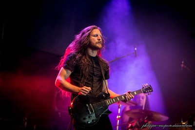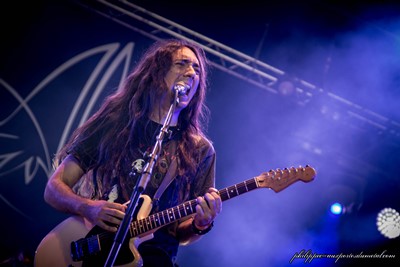 Je suis surpris de la facilité avec laquelle nous nous sommes levés ce matin. Comme quoi une vrai nuit de sommeil, aussi courte soit elle mais dans un vrai lit, une bonne douche, clairement ça aide à survivre à un Hellfest dans de bonnes conditions. Je suis devant la scène pour le set de Jared James Nichols pour l'ouverture de cette journée sur les Mainstage. Je ne connaissais pas grand chose à ce jeune guitariste de blues rock américain, mais j'ai pas mal lu sur lui pour préparer mon interview qui aura lieu plus tard dans la journée, et sur le papier l'artiste est hors norme. Ils sont trois sur scène, le trio typique de blues rock, ils me rappellent un peu Raven Eye exactement au même endroit l'année dernière. Le son est excellent, et le Jared est juste un monstre. Si tu essayes de commencer la guitare, n'écoute pas tu vas te faire du mal. Il dégage en plus une énergie de fou. Il joue curieusement aux doigts et attaque ses cordes avec le pouce. C'est assez impressionnant. Il a des petits airs de Ted Nugent jeune, c'est marrant. Il a pas mal de soucis avec le strap de sa guitare qui se défait une première fois, il continue de jouer et chanter comme si de rien, et finit par le remettre. Mais carrément toute l'attache s'arrache de la guitare. La brute ! Il finit par changer de guitare au morceau suivant et cette fois, c'est l'attache arrière qui le lâche. Il est fan de Mountain et ça se voit dans son style qui est un mélange de Mountain, Stevie Ray Vaughan et Ted Nugent. Ils font une superbe reprise de Mississippi Queen de Mountain et terminent. Il y a un moment d'hésitation, la foule chante "we want more" et, fait assez étonnant, ils reviennent sur scène et attaquent une reprise de Cat Scratch Fever de Ted Nugent, une version raccourcie qui ne dure que trois minutes. En fait il m'expliquera pendant l'interview qu'il leur restait trois minutes, qu'ils ont failli abandonner mais en entendant la foule, ils se sont dit que putain, ils venaient de Los Angeles pour ça et que ces trois minutes ils allaient les prendre. Superbe set, guitariste incroyable, fallait se lever tôt mais ça valait sacrément la peine. We want more !