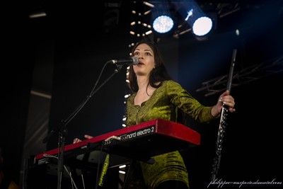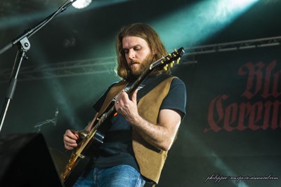 Après une série d’interviews dans le carré VIP, je vais enfin voir mon premier concert de la journée. L’heureux élu est le groupe canadien Blood Ceremony qui va officier dans The Valley. Les Canadiens entrent sur scène avec Old Fires, un titre survitaminé qui fait de suite réagir le public venu en masse voir les cousins, la tente déborde. Sean Kennedy nous gratifie déjà d’un superbe solo. Pour le titre suivant, Goodbye Gemini, Alia O'Brien la chanteuse s’arme de sa flûte traversière tout d’abord pour l’intro puis pour plusieurs interventions au cœur du morceau, on a droit à un court duel avec Sean. Deux titres joués et c’est déjà les acclamations sous la Valley. La basse de Lucas Gadke raisonne sur l’intro de Drawing Down the Moon, elle est omniprésente, comme l’orgue d’Ania au son bien vintage, fidèle aux ambiances des 60’s et70’s. Cela continue avec Half Moon Street avec son solo de flûte puis son duel final avec la gratte de Sean. Ania assure vraiment, avant de monter sur scène elle a dû manger un Ian Anderson en entier, ses interventions sont vraiment dignes du leader et flûtiste de Jethro Tull. Lord of Misrule qui suit puis I'm Coming With You sont encore deux titres très inspirés par Jethro Tull. La voix d’Ania colle bien au style, le rock occulte joué par Blood Ceremony est magistralement exécuté. Nous sommes tous sous le charme de la sorcière à la flûte, quand elle entame le premier couplet de The Magician, puis c’est au tour de Sean de se faire acclamer avec un super solo, ce titre est magnifique, chaque musicien met sa pierre à l’édifice, l’intervention de Lucas en duel avec Ania est géniale et que dire de Michael Carrillo avec son jeu de batterie ? The Magician sera le dernier morceau joué lors de cette cérémonie sanglante. Le public sort de l’hypnose où le groupe l’a plongé. Des tonnerres d’applaudissements bien mérités retentissent sous The Valley. Blood Ceremony nous a gratifié d’un set mémorable, d’une grande intensité émotionnelle… Plus rien à ajouter.
