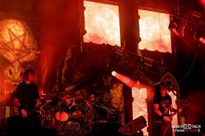 Comme pour In Flames vendredi, ce soir je suis encore sans but précis, donc je fais confiance à mon pote Fred, qui a choisi de voir Kreator que je ne connais aussi que de nom. On entend une intro, tout le monde est en place. Enfin la lumière fut, sur le titre Hordes of Chaos. La scène et le light show sont magnifiques, les Allemands on fait les choses en grand. Côté musique, le son est excellent et je suis agréablement surpris par la voix de Miland « Mille » Petrozza qui est aussi un très bon guitariste. On en prend plein les oreilles et plein les yeux, le public connaisseur et fan est aux anges, quand il entend retentir les cloches qui annoncent Satan Is Real. A partir de ce titre, on se sent vraiment dans une fête en enfer ! La danse du teston (tête) est de mise, ça bouge dans tous les sens. Les dieux de la violence vont continuer leur tuerie, le summum est, après l’interlude sonore Mars Mantra, l’enchainement avec Phantom Antichrist qui me met une grosse claque dans la gueule. J’adore ce titre depuis le concert, je l’écoute en boucle. Un moment encore très chaud c’est l’annonce du brûlot Enemy of God, putain il déboite ! J’ai bien aimé aussi Violent Revolution et son refrain chanté par le public. Puis, que dire du titre final Pleasure to Kill à part qu’il nous a achevés ! L’intro de Death Becomes My Light en bande sonore annonce la fin des fins, le groupe ne reviendra plus. Le public est sur les genoux, c’est fini. Putain le kiff, j’ai pris une sacrée branlée !