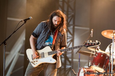 La dernière fois que j’ai vu Mars Red Sky en concert, c’était au Hellfest, mais dans The Valley ancienne version, ils faisaient l’ouverture de la tente puisqu’ils y passaient à 10h30 le vendredi. Et depuis cette date, les choses ont bien changé, les Bordelais sont montés en grade, les voilà programmés le deuxième jour et en fin d’après-midi avec presqu’une heure de set. A son entrée sur scène, on sent le groupe un peu tendu, il faut dire que The Valley est archi-pleine et que la nouvelle version est deux à trois fois plus grande que l’ancienne, donc il y a de quoi être surpris. Mais cela ne va pas durer longtemps. Car le public, content de les retrouver, va vite les réchauffer avec ses applaudissements fournis. Mindreader sera le premier titre joué, la musique de Mars Red Sky avec sa rythmique pachydermique de Matgaz (batterie) et Jimmy (basse), puis la guitare lancinante et la voix plaintive de Julien, prend vraiment aux tripes. Pour cette occasion, le trio va nous jouer une setlist presque inédite en incorporant le single Shot In Providence (huit minutes de pur bonheur), puis en enchaînant avec Myramid, un instrumental de dix-sept minutes qui sort en vinyle le jour même du concert ! Sacrée pièce que j’ai eu la chance d’écouter quelques jour avant, mais pour la plupart des spectateurs qui l’entendent pour la première fois, cela doit être compliqué de l’apprécier à sa juste valeur en live. Vu les acclamations à la fin de cette composition, je me suis fait du souci pour rien. Les Bordelais ne sont pas très bavards, leur musique parle pour eux, on est hypnotisé. Le ressenti est fabuleux mais on a l’impression que nous n’avons pas le même que les musiciens puisqu’ils ne parlent pas entre les titres, c’est un fait, mais ils ne communiquent pas non plus par la gestuelle, ils se retrouvent souvent dos au public ou le nez sur leurs instruments, c’est un peu dommage car avec des compos aussi longues, l’assistance peut piquer un peu du nez. Strong Reflection tiré du premier album va redonner un peu d’énergie à l’assemblée, Mars Red Sky termine son concert avec Alien Ground/Apex III, dernier voyage d’une dizaine de minutes, un final qui ravit l’auditoire. Malgré quelques petites longueurs, Mars Red Sky a réussi son changement de statut, les Bordelais en proposant une setlist unique avec des titres peu joués en live, ont pris des risques et pour ça, chapeau !