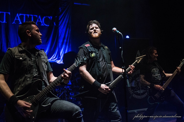 Il y aura peu de répit en fait, comme les deux groupes locaux partagent une partie du matos le changement de plateau est assez rapide. Heart Attack très attendu entre sur scène sur l'instrumental Nocturnal Sight qui est aussi l'intro de leur nouvel album The Resilience, sorti le 24 mars 2017. Les Azuréens acclamés par le public commencent leur set par deux titres extraits de leur dernier opus : Burn My Flesh, qui en live a déjà été joué par le groupe notamment ici même en 2016 en première partie d'Hypno5e et Congrats To People avec un solo magnifiquement interprété par Chris (Césari).