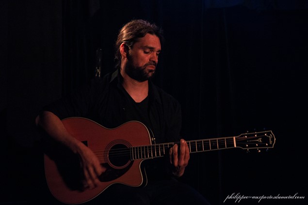 Il n’a certes, qu’un tom basse, mais il alterne les façons de l’utiliser, passant de fagots à des mailloches, selon le son qu’il veut obtenir, parfois même dans un même morceau. C’est assez fascinant à regarder. La voix de Yann est toujours exceptionnelle, l’émotion qu’il transmet dans sa voix est vraiment touchante, sur des morceaux comme Grim Dance ou Nebulous, les frisons nous gagnent. Cet exercice acoustique nous prouve que l’intensité d’un morceau et la puissance sonore sont deux choses différentes. Là, ce soir, en acoustique sur scène, l’intensité est énorme. Ils terminent par Nebulous, mais restent sur scène sous les acclamations de la foule (une soixantaine de personnes), et du coup nous proposent une petite dernière avec Rocket Smoke. Au final ils n’auront pas joué Drifter, un morceau qu’ils ont joué en acoustique à Paris par exemple et qui n’est pas sur le Unplugged. Ils en avaient parlé pendant l’interview le matin. Dommage. Ils saluent et descendent directement dans le public, pour rejoindre le stand merchandising où pas mal de monde s’est déjà agglutiné.