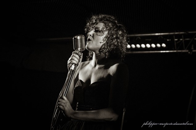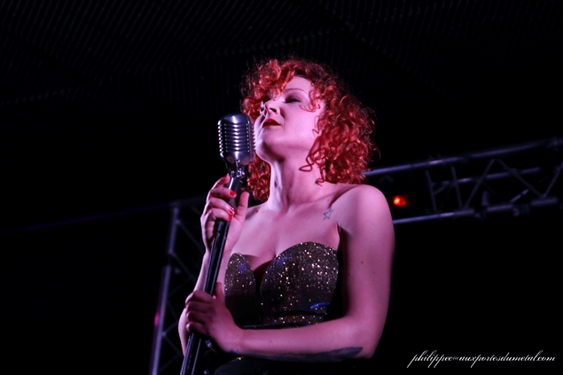 Le plateau est assez vite mis en place, c’est vrai qu’en acoustique, c’est moins compliqué. Sur scène se présente le duo parisien Still, composé d’Axel à la guitare et de Culotte, toute en beauté, au chant. Laurie alias Culotte porte une tenue de pin-up années 50, très glamour avec une jupe bouffante taille haute et un très joli haut doré décolleté sans bretelle de type bustier et surtout un joli petit minois sous une chevelure rousse qui se cache derrière un micro vintage. Elle me fait penser à Betty Boop, avec une belle voix douce-amère qui me fait un peu penser à celle d’Axelle Red.