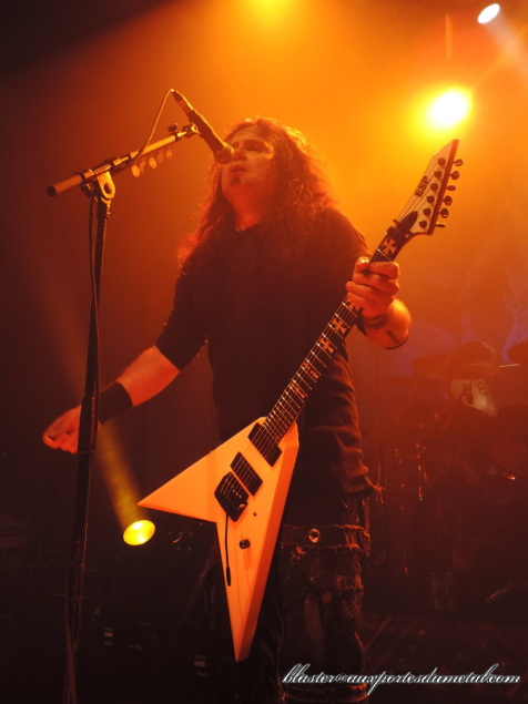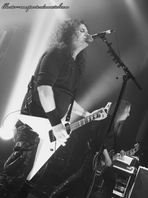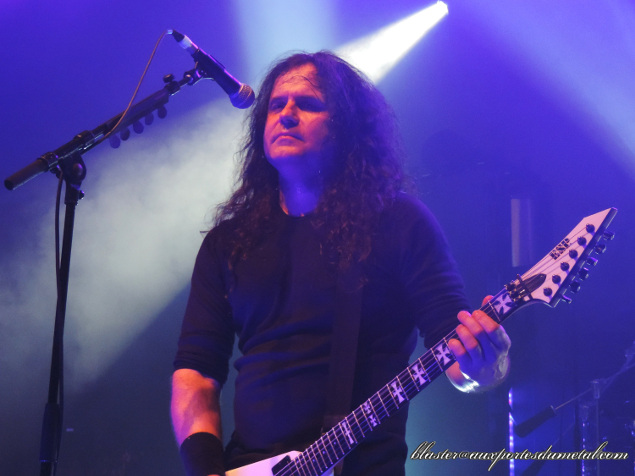 A part cela, ce fut du pur Kreator... avec une fosse bien excitée et sans cesse relancée par un Petrozza qui encouraga notamment les fans à créer le plus gros mosh pit que le Bataclan ait jamais eu. On l'a connu plus belliqueux d'ailleurs, le Mille. Bien sûr qu'il a largement sollicité du pogo et autre joyeuseté, mais il a quand même dit qu'on était là pour célébrer la paix et le metal... Alors comme ça, vous pensiez qu'il avait juste envie de voir des fans se foutre sur la gueule (mais gentiment, avec le sourire, hein) ? Eh bien non, il a un coeur, le monsieur. Il a également rappelé les liens forts qui unissent la France à son groupe, nous a remercié d'avoir toujours été là, dans les bons moments comme dans les mauvais, et a promis que Kreator serait également toujours là pour nous.