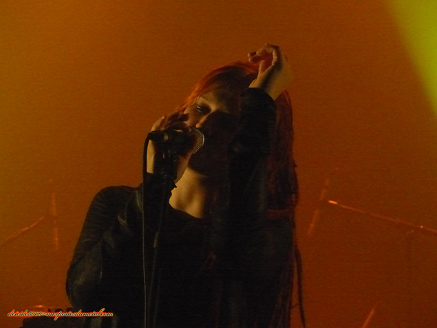 Il est 20h40, et alors là, on baisse en gamme avec Alithia, un groupe sympathique mais inintéressant. Ils sont deux fois plus nombreux sur scène et m’emballent deux fois moins. Après une intro assez longue, la chanteuse aux dreadlocks arrive sur scène. Elle est très douce et fera apprécier son filet de voix, malheureusement très en deçà des qualités vocales des deux groupes suivants. Le massif chanteur, et claviériste, prend la tête de la danse. Il est gaulé comme un Chuck Billy (Testament) et nous donne la tonalité, trop content de nous dire qu’ils viennent d’Australie. C’est remuant mais part un peu dans tous les sens. Le bassiste s’agite beaucoup, comme sous l’influence d’une substance, alors que les autres ne bougent pas (il leur vole la vedette). C’est décousu et ne m’intéresse à aucun moment. Un set avec quelques passages instrumentaux, qui me laissera de marbre.