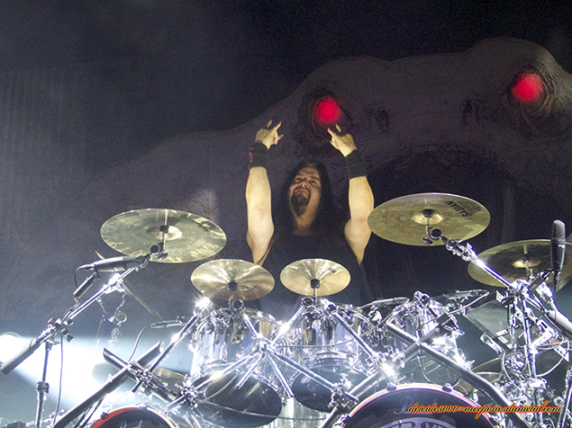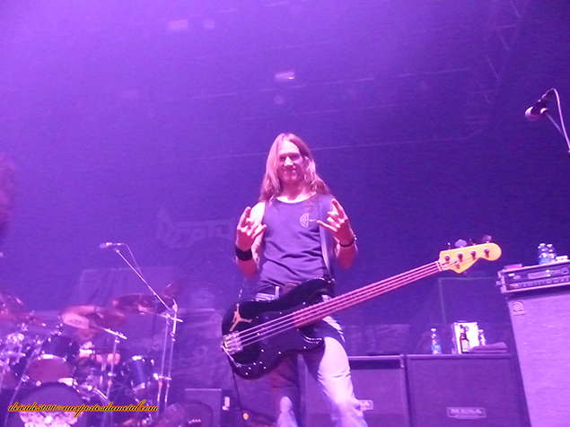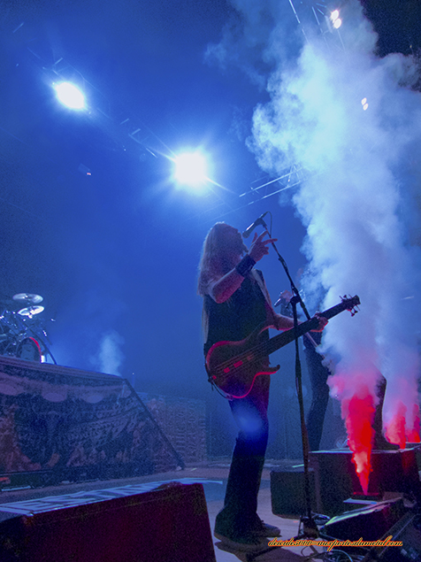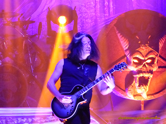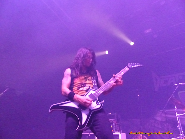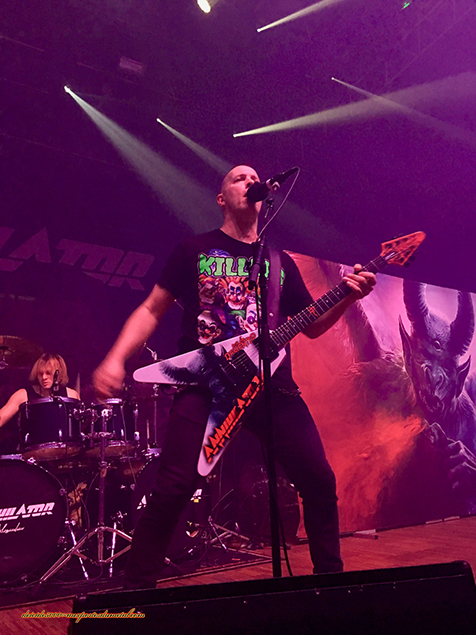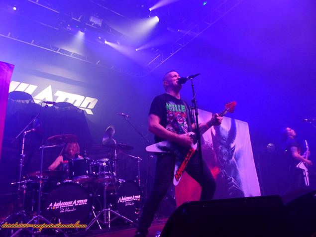 Après une entracte de quinze minutes, il est 20h30 et la powerhouse d’Annihilator est en marche. Jeff Waters (le seul survivant du groupe originel) bénéficie d’un très bon son. Je n’aime pas son chant et n’accroche plus à ce qu’ils font depuis longtemps. Idem, je sonde d’autres potes qui sont ravis de la prestation. Ben tant mieux, ça réussit à remuer son monde mais moi, à part le backdrop (celui avec le démon de l’album For the Demented), je ne kiffe pas. Le set ne dure que quarante minutes, c’est quand même peu pour un groupe de ce calibre là. Jeff Waters est super souriant mais ça ne fait pas tout. Il s’attire les applaudissements avec une déclaration en français qui nous va droit au coeur : “Merci beaucoup mes amis”.