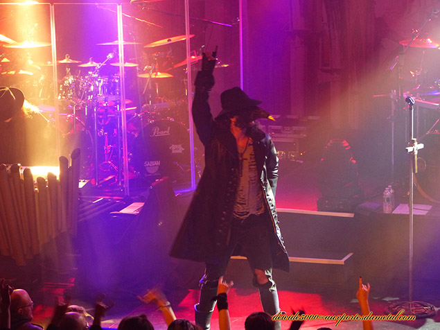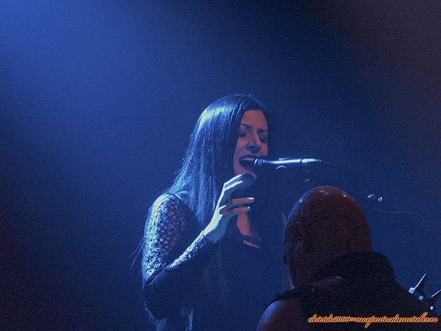 Ce bon Dani, en armure à pointe, n'arrête pas les allers-retours d'un côté et d'autre de la scène et harangue le premier rang pour qu'il donne un maximum d'énergie. Il faut reconnaître que le pauvre fait un peu petit au milieu des trois géants guitaristes et bassiste mais il se donne sans tricher et est vocalement en forme. Heureusement que l'organisation et sympa et lui a mis une petite estrade derrière qui lui permet de surplomber ses collègues. Il va à l'occasion jouer les faire valoir à Lindsay Schoolcraft, la touche féminine de la soirée. Elle est clairement l'atout charme du groupe même si la demoiselle doit occuper deux postes, en combinant clavier et chant, question de rentabilité sans doute... Chapeau sur la plupart des compos où sa voix passe bien.