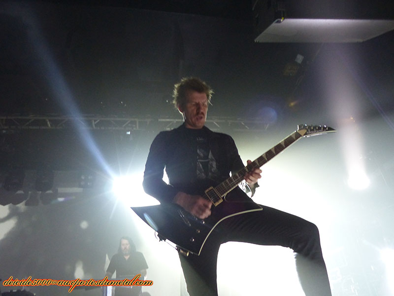 Mikael Stanne (chant) fait un super job d’interaction avec le public. Sa décontraction y fait pour beaucoup. Plutôt que de jouer les stars, Dark Tranquillity annonce directement qu’ils ne feront pas de rappel. Comme ils n’ont pas beaucoup de temps (la faute à la salle, toujours…) ils choisissent de continuer à jouer pour loger plus de chansons. Et ils en sont largement remerciés. Mikael Stanne finit le ”bal” en assurant la présentation de chacun des membres de son groupe.