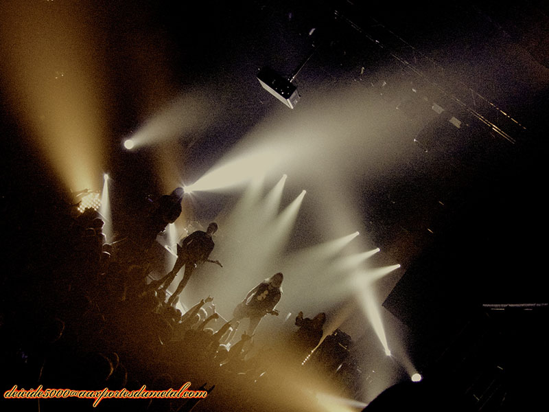 Le bassiste Anders Iwers, looké papa Noël est souvent au centre de la scène. Il faut dire qu’on est dans du pur suédois. Atoma est jouée à la perfection. Et pourtant, l’acoustique est loin d’être bonne. Le crowd surfing est à son comble sur des titres comme Terminus (Where Death Is Most Alive). Même si je ne suis pas fan à ce point là, je ne peux qu’apprécier le grand moment d’émotion sur le solo d’Inside the Particle Storm joué par Johan Reinholdz.