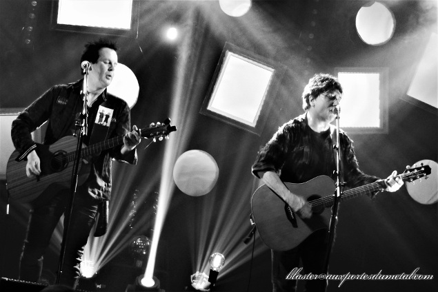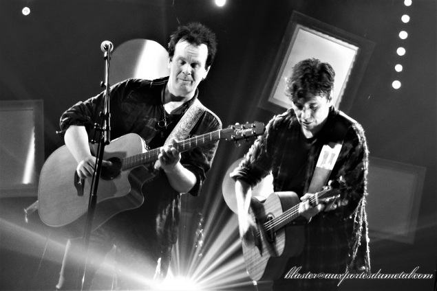Après une courte pause, Eric Martin et son compère "Demon Dave", comme il l'appelle, investissent la scène du Forum en toute simplicité et attaquent bille en tête avec un titre de Mr. Big bien sympa, que le groupe ne joue plus en concert depuis bien longtemps : Electrified (de l'album Get Over It). Très bonne entrée en matière pour plusieurs raisons : comme je viens de le dire, la compo est rare, c'est sympa d'être surpris d'entrée de jeu (il aurait été facile de démarrer avec un classique)... en plus de cela, elle est très bonne et énergique... Show acoustique ne veut pas forcément dire "chansons molles du genou". Autre élément qui fait plaisir, Eric Martin semble en forme, il attaque le set comme il faut avec une voix bien posée, assez claire et puissante. Peut-être que l'exercice acoustique, moins fatiguant pour les cordes vocales, va lui permettre de briller davantage que lors de certains concerts électriques de Mr. Big... La suite de la soirée le confirmera. Ce premier titre est conclu avec humour par un "Thank you Budokan!!" qui rappelle que le chanteur a été plus habitué à jouer au Japon qu'en Europe pendant une bonne partie de sa carrière. Tout cela démarre fort bien.