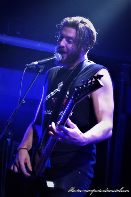 Depuis la dernière fois, il y a eu un changement de guitariste et un nouvel album joliment nommé Extinction. Quand le groupe investit la scène, la salle du Petit Bain n'est pas comble... mais le public est très rapidement acquis à la cause des thrasheurs grâce à une musique percutante et directe, idéale pour les fans du genre qui apprécient les vieux albums de Slayer ou Kreator. Si les compos déployées par le quatuor ne réinventent rien, elles ont l'avantage d'être bien agressives et développent quelque chose de forcément familier qui fait qu'on se sent bien. En plus, on leur reconnaîtra une véritable efficacité et comme le groupe ne se donne pas qu'à moitié, les premiers pogos ne se feront pas attendre longtemps (dès le premier solo du premier titre, Extinction).