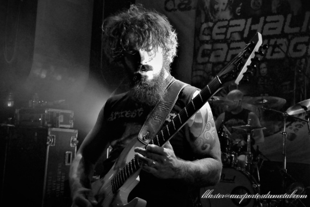Les messages délivrés par le frontman tournent beaucoup autour de la picole et la fumette... il nous avouera lui-même qu'il est bien défoncé ce soir. Tout cela se déroule dans une ambiance assez bon enfant... et tout d'un coup, sur l'avant-dernier titre, les membres du groupes revêtent des masques flippants ou juste... bizarres (le bassiste, excellent soit dit en passant, choisira une tête de cheval)... c'est le carnaval, mais le carnaval du chaos ! Le batteur est hallucinant de maîtrise et de puissance... on aimerait pas être à la place de son instrument. Désolé de ne pas vous en dire beaucoup plus sur la musique ou les titres joués, j'avoue totalement mon inculture pour ce qui est de ce groupe. Une confirmation personnelle : le grind, ce n'est vraiment pas pour moi... mais voir Cephalic Carnage sur scène reste une expérience intéressante.