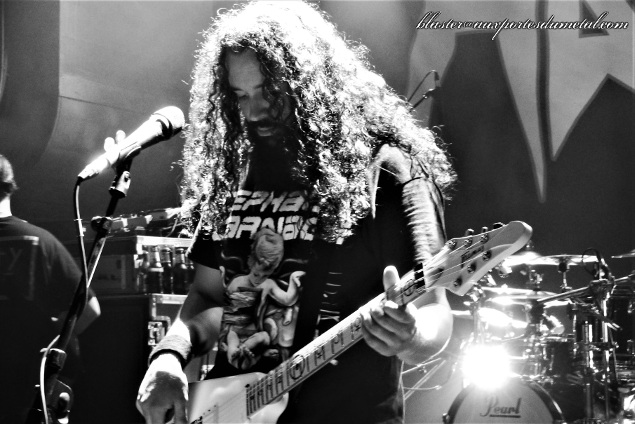 C'est Hang 'Em High, compo extraite du dernier album (le réussi Conformicide), qui lance les hostilités. Cet album sera bien représenté ce soir avec cinq extraits. L'autre disque privilégié de la soirée sera Time Is Up, avec cinq compos lui aussi. C'est d'ailleurs la bien nommée Prepare For Attack qui fera office de deuxième titre, continuant ainsi de créer le chaos dans la fosse du Petit Bain. Pas de blabla entre les différentes offensives, les Américains enchaînent les compos sans temps mort. David Sanchez est un frontman assez statisque (c'est un peu le problème quand on est à la fois guitariste et chanteur) mais efficace, à la voix bien rageuse et aux riffs assassins. En revanche, il demeure assez peu expressif. Celui qui fait plus le show et attire très souvent les regards, c'est l'excellent bassiste Nick Schendzielos. Déjà, son jeu de basse (très bien servi par la sono) est remarquable, il amène à la musique du groupe un groove certain avec ses parties de slap (et rappelle ainsi l'apport d'un certain Trujillo dans Suicidal Tendencies ou Infectious Grooves), mais en plus, il a une bonne présence sur scène, se rapproche très souvent du public et son instrument au manche parcouru de diodes vertes fait également son petit effet.