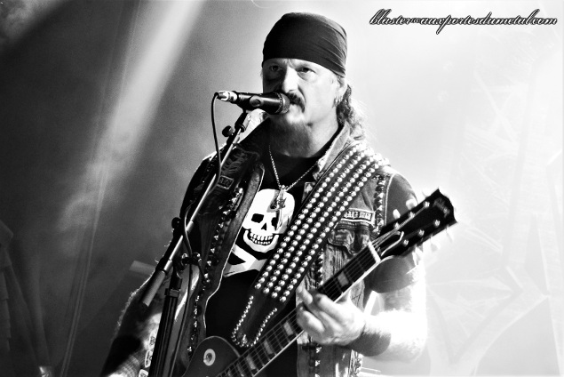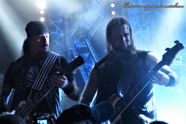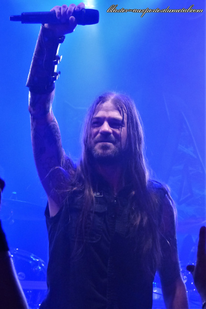 A part cela, Iced Earth balance son heavy avec la solidité qu'on lui connaît. Comme d'habitude, la communication avec le public n'est pas le centre de préoccupation des Américains qui préférent enchaîner les morceaux à un très bon rythme plutôt que de raconter leur vie. Stu Block prendra tout de même la parole à quelques petites reprises, histoire d'introduire le morceau Brothers, par exemple, en expliquant que le morceau parle de sa relation avec le groupe, et plus particulièrement avec Jon Schaffer. The Hunter aura aussi le droit à une courte intro... Watching Over Me également car, les fans le savent bien, cette chanson a été écrite par Schaffer qui, à l'époque, avait perdu un de ses meilleurs amis dans un accident de moto, et ce soir, ce morceau est évidemment dédié au batteur Vinnie Paul (ex-Pantera, Hellyeah) dont on a appris la mort quelques heures plus tôt. Pour l'occasion, Schaffer prend d'ailleurs le micro pour dire quelques mots, son hommage reste court et pudique mais son émotion est palpable.. Block a, lui aussi, l'air assez secoué.