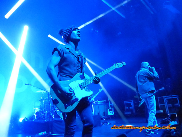 Kemar (chant) met l’ambiance dès le début en arrivant sur scène “oh, ça sent le chaud ici”. En effet, La Cigale n’est pas pleine à craquer mais bien remplie cependant. J’aime bien le dernier album et je vais être servi avec La Gloire Du Marché suivi de Silencio, Kids Are On The Run, Ali (King Of The Ring). Après les trois premières chansons, conversion personnelle de photographe à auditeur…[pause technique]… intéressante car je croise Mouss de Mass Hysteria (prémonition de l’apparition de Fred Duquesne plus tard dans la soirée).