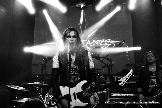 Des jeunes groupes qui font du heavy des années 80, ce n'est pas ce qui manque de nos jours... il faut alors tirer son épingle du jeu (ouais, je ressors de vieilles expressions, c'est raccord). Les atouts d'Existance : de l'entrain, de la conviction et de sacrés bons riffs et solos. On connaît la recette par cœur... mais quand c'est aussi bien fait, ça marche ! Les compos sont taillées pour le live, c'est très sympa et le temps passe vite (trente-cinq minutes, c'est même trop court, je n'aurais pas craché sur des prolongations). L'ambiance dans la salle est au diapason, chaleureuse et bon enfant. Julian, le chanteur/guitariste, se fend d'un petit "Vous êtes vraiment chaud patate ce soir" entre deux morceaux... Tout le groupe se donne bien et des morceaux comme Dead Or Alive, Breaking The Rock ou From Hell n'ont aucun mal à emporter l'adhésion de l'assistance.