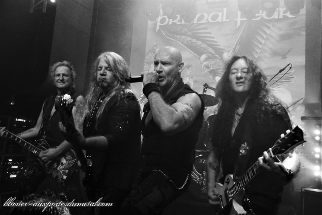 Peu de communication entre les titres, le groupe est là pour servir du metal et il le fait bien. Primal Fear met un point d'honneur à montrer toutes ses facettes et fait aussi bien dans le gros heavy tranchant qui tache que dans les titres plus nuancés et symphoniques comme Eye Of The Storm ou Fighting The Darkness. Speed, heavy traditionnel, metal plus moderne aux mélodies très accrocheuses (King Of Madness), hymne true metal concon mais qui plait à beaucoup de fans à tel point que cela occasionnera le premier vrai pogo de la soirée (Metal Is Forever, que je n'ai donc pas fini de subir en concert vu son succès), tout y passe... L'ambiance est chaleureuse, le show bien mené et dépasse les quatre-vingt-dix minutes pour le plus grand plaisir des fans. La soirée heavy metaaaaal a tenu ses promesses et ce voyage dans le temps fut plus que plaisant même si j'ai trouvé que la tête d'affiche n'avait pas réussi à surenchérir après un Riot V (ni à l'égaler) particulièrement convaincant (point de vue personnel qui sera certainement contredit par de nombreux fans de Primal Fear).