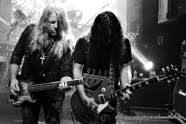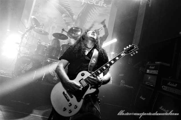 Les Américains arrivent rapidement à se mettre une bonne partie du public dans la poche à force de compos racées, d'interprétation soignée (les duos de guitare de la paire Flyntz / Lee sont d'une précision qui impressionne) et aussi parce que le groupe semble prendre beaucoup de plaisir et le communique très bien. Don Van Stavern est sans doute le plus jovial de la bande et son gimmick à lui, c'est de brandir sa bouteille de tequila pendant le set et d'aller la partager avec quelques fans des premiers rangs à plusieurs reprises. A un moment, alors que les musiciens sont prêts à attaquer le morceau suivant, on les voit se marrer à attendre que Don ait fini d'abreuver quelques personnes du public avant qu'il ne revienne se placer derrière son micro et dire "Don't interrupt tequila time !!".