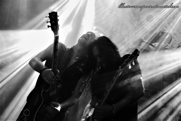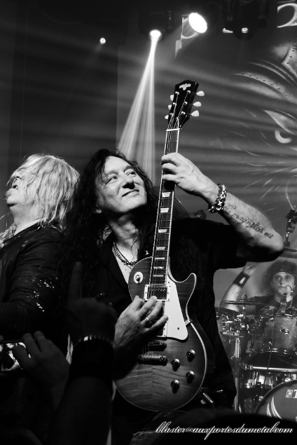 Le set se compose de quelques compos récentes comme Caught In The Witches Eye, Angel's Thunder, Devil's Reign ou Take Me Back (seule rescapée de l'album Unleash The Fire) mais n'oublie évidemment pas de faire la part belle à quelques vieux classiques (les indispensables Warrior ou Swords And Tequila) et surtout à un album en particulier, celui qui fête ses trente ans d'existence cette année, j'ai nommé le fameux Thundersteel (dont on n'aura pas moins de quatre extraits : Flight Of The Warrior, Johnny's Back, Bloodstreets ou l'imparable chanson titre qui clôturera le set de manière fantastique). Puissance et dextérité, heavy enlevé, hard rock enjoué (Take Me Back) et titres speed sont de la partie pour un concert assez complet et varié.