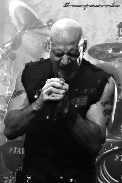 Le son a été franchement bon pour les deux premiers groupes, on ne sera pas surpris qu'il le soit tout autant pour la tête d'affiche qui débarque sur scène avec du vieux classique. C'est pourtant bien l'intro titre d'Apocalypse, le petit dernier, qui nous est servie alors que les Allemands investissent la scène du Petit Bain... mais juste après, c'est la fameuse Final Embrace (de l'album Jaws Of Death sorti en 1999) qui lui emboîte le pas. Et ce n'est pas tout, à peine le temps de souffler et se remettre de ce premier assaut teuton mené dans les règles de l'art que déboule Chainbreaker, le tout premier hymne issu de l'album éponyme de 1998. Excellent démarrage qui fait bien chanter et remuer la salle d'entrée de jeu.