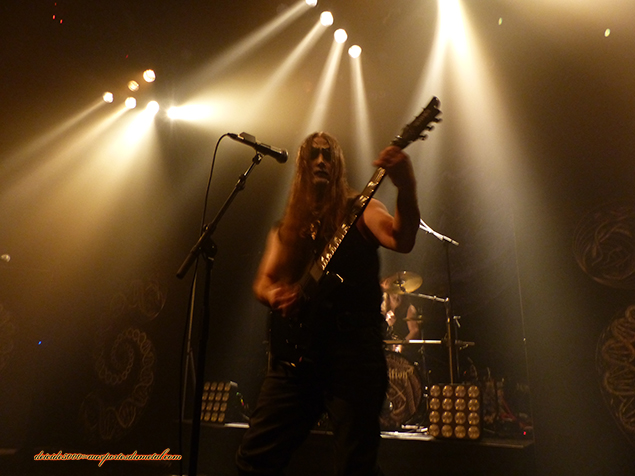 Le jeu de scène est rôdé même s’il est plutôt statique, pas d’inversions de position des guitaristes de part et d’autre. Spiros Antoniou est très démonstratif et joue de sa voix pour lancer l’enrôlement de la foule dans tous les programmes minceur (activités fitness inclues), slam, etc. Cependant, Toulouse est timide ce soir, pas de slam, pas de crowd surfing, juste quelques mouvements de pogo et pas de circle pit. Le son est énorme et le choix des compos excellent. J’ai adoré la setlist qui fait la part belle au dernier album Codex Omega avec cinq chansons sur onze. Les albums récents sont également honorés : Communion, Titan, The Great Mass. En clair, rien de l’époque Septic Flesh….