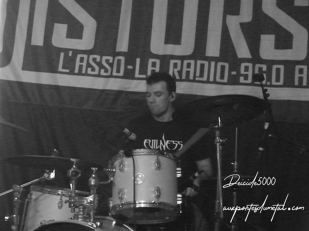 Evilness Evilness est le groupe qui me va me sidérer ce soir là. Les petits jeunes ne paient pas de mine, sont timides en interview mais ont une musique rentre dedans qui vient à point nommé quand ils prennent la scène à minuit passé. C’es du thrash death qui nous vient de Toulouse. Le groupe a débuté il y a plus de cinq ans avec un style brutal Death très affirmé pour évoluer ensuite vers du Thrash Death plus mélodique. Depuis l’EP sorti en 2013, le groupe s’est reconfiguré et a abandonné son chanteur grogneur (très teinté Death) pour un chanteur brailleur (plus metalcore). Le chanteur est en fait Ludovic le petit frère de Sébastien Chiffot guitariste et âme du groupe.