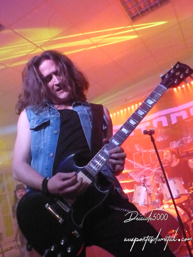 Assez rapidement leur chanteur nous lance un “we are from MONTPELLIER, we’re Highway” pour s’interrompre aussitôt en riant, en le refaisant en français. Excellent, très interactif. Voilà donc un set peu formel, super souriant, tout dans la bonne humeur. Les frères Ben et Romain Chambert (guitare et batterie) mettent le feu. Ben a un jeu de scène complet, monte partout, sautille façon Angus Young (AC/DC), etc.. La bête de scène en clair.