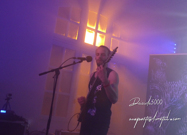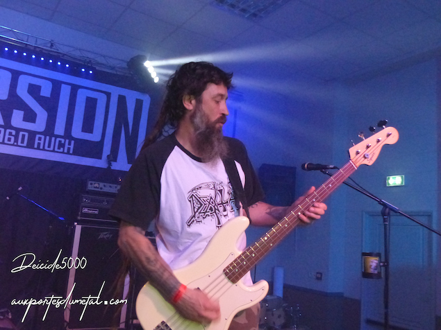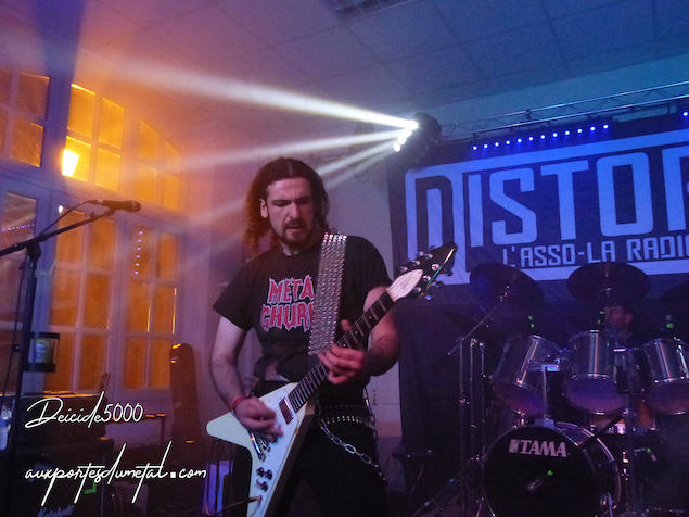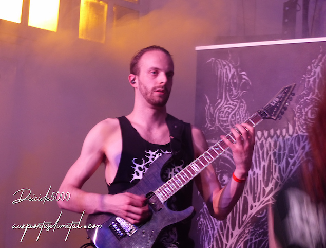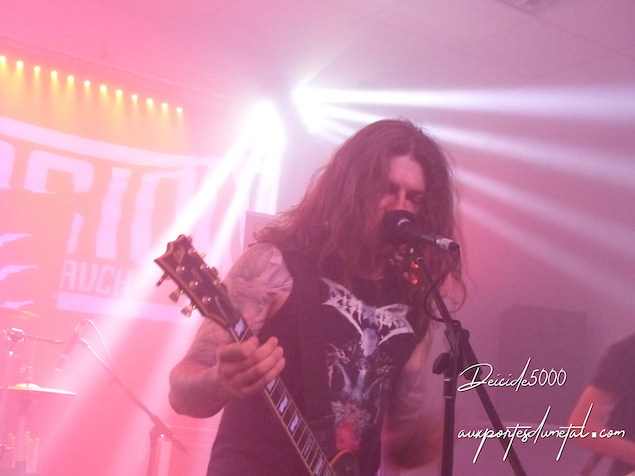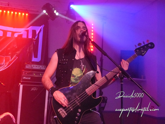 Un trio (pas le seul de la soirée) énergique et très sympathique. Le guitariste chanteur, Jeremy, est surprenant. C’est un grand gaillard timide comme pas deux, qui se transforme sur scène. Il a une bonne variété de chant, allant d’un truc ressemblant à du King Diamond, jusqu’à du Death lors d’une reprise du fameux groupe en question.