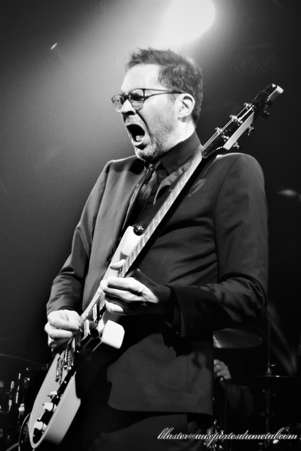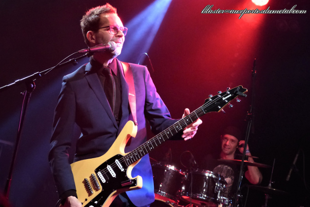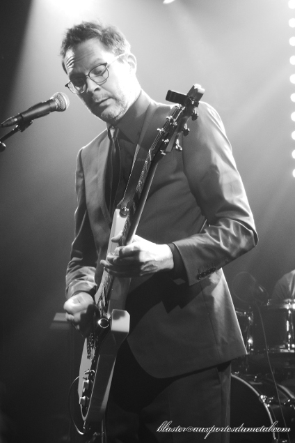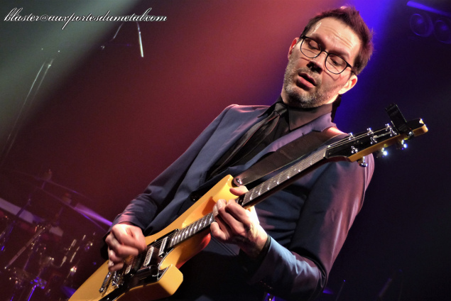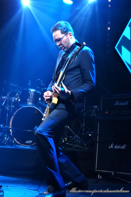 Le guitariste arrive sur scène accompagné de "sa" section rythmique française, visiblement ravi d'être là, avec un petit effort vestimentaire (costume, chemise, cravate, pas tout à fait la configuration rocker décontracté habituelle) qui laisse augurer quelque chose de pas très "metal"... à juste titre. Le trio se lance de suite dans une petite impro instrumentale sur le thème archi-connu du film Rocky histoire de commencer sur quelque chose d'assez festif et conquérant à la fois.