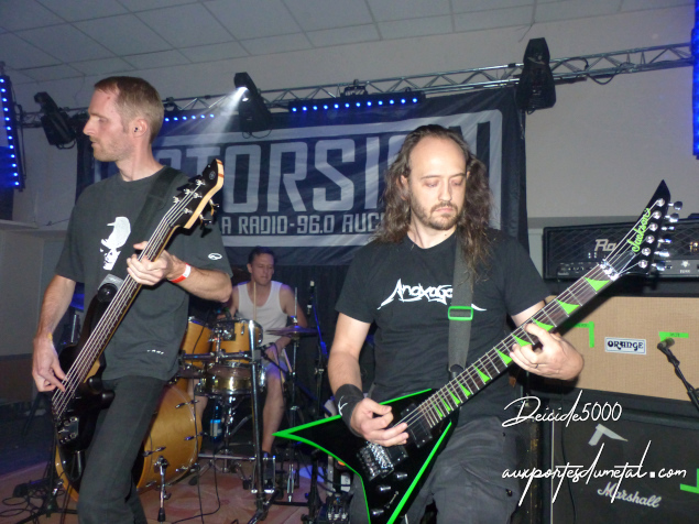 From Dusk To Dawn lâche son metalcore bourrin et je suis assez impressionné par la prestation du chanteur Flo qui a une voix bien crédible et celle du petit Julien Hinojosa, bassiste et assistant chanteur sur les growls. Leur jeu de scène jettent une méga ombre sur Averell et Jack. Ils ont récupéré l’ancien batteur de Supremacy (déjà vus dans la même salle) mais ça ne m’impressionne pas… apparemment, c’est sa petite copine qui impressionne plus mais je ne l’ai pas vue, j’en ai plus entendu parler le lendemain….
