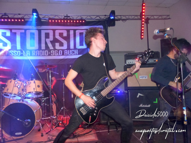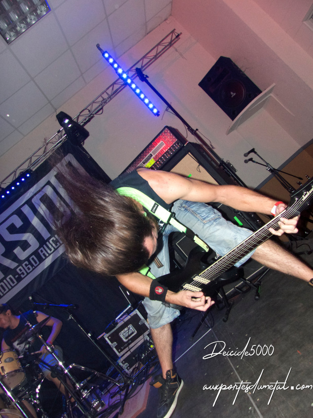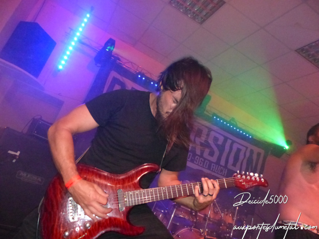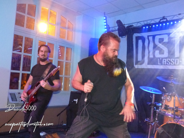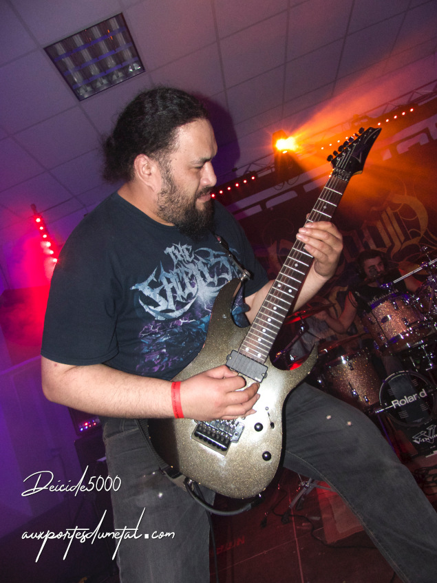 Le death est brutal, impitoyable sans oublier de nous charmer au passage. Je les ai vus l’année passée et le line-up a un peu changé. Augustin Tamarre est remplacé à la gratte par Zachary Nadal (ça fait moins d’un an, un ex Stormhaven) et Peyo le bassiste a été remplacé par… une bande magnétique… Michaël Martin, avec sa batterie hybride, sa classique technique de double stroke sur pad de grosse caisse Roland alors que le reste de sa batterie est acoustique…