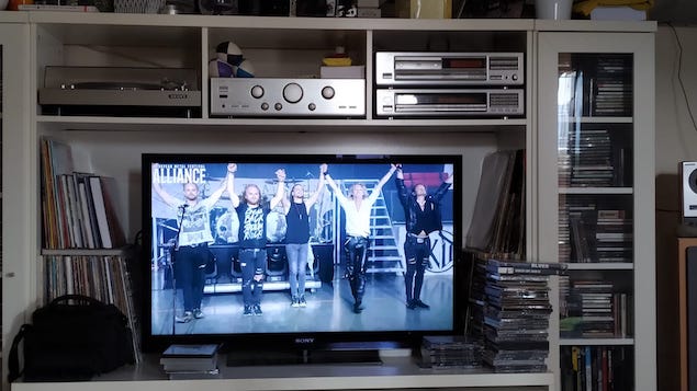 J’avoue que j’ai passé de très bons moments et découvert des groupes que je ne connaissais pas trop. J’ai raté la journée de vendredi mais les concerts sont disponibles pendant 48h en replay (un peu court quand même) sur le site du festival. Dans le live stream, on peut voir le nombre de connections que j’ai vu osciller entre 1 200 et 2 000, ce que je trouve assez faible pour un évènement planétaire (même si la promotion et les horaires sont européens). Autre avantage, la production affiche le titre de chaque morceau dans un coin de l’écran, j’aime bien.