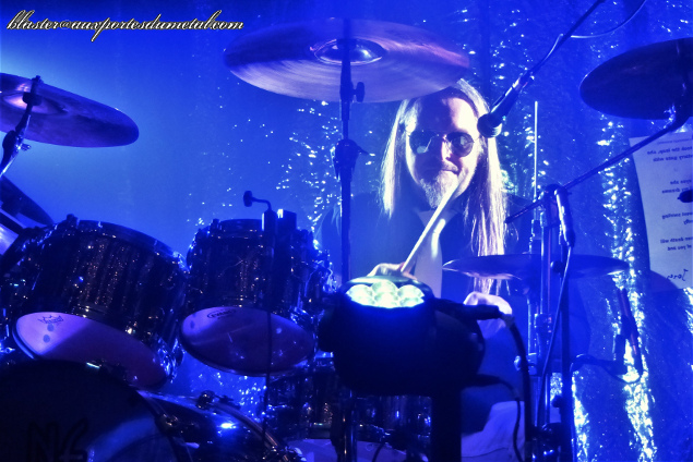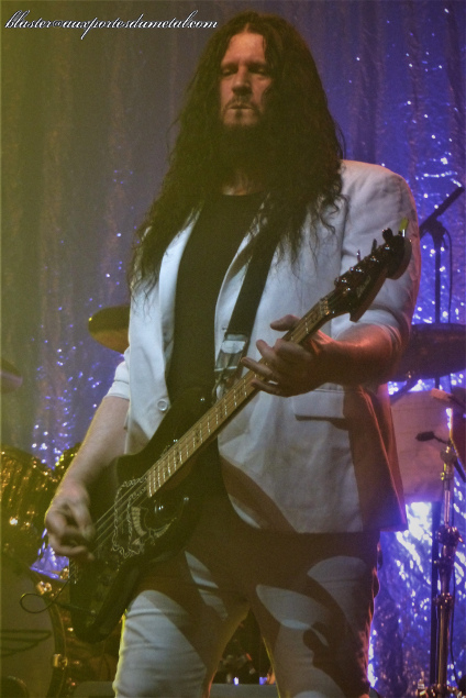 Pendant ce temps, sur scène, ça joue et ça joue bien ! L'imposant Sharlee D'Angelo fait vrombir sa basse comme il faut, avec énergie et le sourire en prime. Le nouveau claviériste (dont j'ignore le nom) qui remplace Richard Larsson porte bien le chapeau et s'acquitte bien de sa tâche, il a même le droit à un beau solo en introduction de l'énergique et galvanisante Can't Be That Bad. A la guitare, David Andersson est bien perché. Il prend régulièrement des poses de possédé (ou de gars légèrement imbibé... un peu trop de champagne avec les deux Anna peut-être ?)... c'est un très bon musicien, on le savait déjà, mais à quelques reprises pendant le set, il me semble que ses solos manquent un peu de "propreté". Est-ce voulu ? Est-ce le champagne ? Sont-ce mes oreilles qui me jouent des tours ? Peu importe car tout cela n'est finalement pas très important, la prestation reste de qualité. Celui qui m'impressionne le plus ce soir, c'est Björn. Je le sens plus à l'aise que les fois précédentes. Plusieurs fois, avec un pote, on échange un regard entendu qui veut dire "oui, c'est clair, il chante mieux qu'avant".