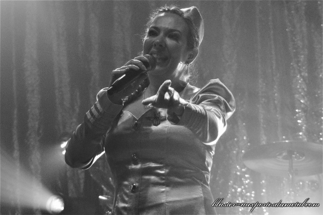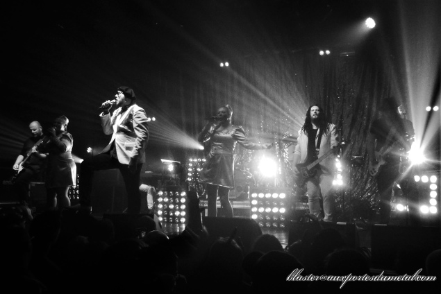 Avec l'arrivée de The Night Flight Orchestra, l'ambiance jusque-là polie va vite se réchauffer. La Machine du Moulin Rouge n'est pas pleine à craquer mais l'affluence est très correcte et la fosse nettement plus remplie qu'une heure plus tôt. Les fans acclament l'arrivée des Suédois qui ont décidé de travailler davantage leur mise en scène ce soir. Sur l'intro du nouveau titre Servants Of The Air, très bonne entrée en matière bien dynamique, les hôtesses choristes (les deux Anna) nous font une petite choré bien synchronisée avec des lumières au bout des mains, comme pour faire atterrir un Boeing sur scène. Fun. Le titre est efficace et lance la soirée sur de bons rails. En plus, le son est très bon (la dernière fois, il n'était pas mauvais du tout mais très fort, voire trop fort, il nous avait bien éclaté les tympans... là, c'est plus raisonnable et on entend mieux les nuances ou la voix de Björn Strid tout simplement). Histoire de ne pas faire retomber l'ambiance, le groupe enchaîne avec Gemini, l'un des imparables tubes d'Amber Galactic avant de revenir sur le nouvel album avec Divinyls et ses mélodies empruntées à ABBA. Voilà un début de set rythmé, pêchu, enjoué... rien à redire.