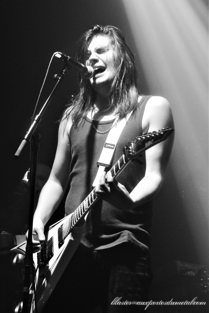 La soirée commence donc avec One Desire... que je ne connais pas. Le hard très mélodique de ces Nordiques est tout à fait accessible et globalement sympathique même si pas franchement renversant. Les membres du groupe sont souriants, visiblement très contents d'être là, ça fait plaisir à voir... D'autant plus que l'accueil réservé par le public est plutôt chaleureux. Pas délirant non plus, n'exagérons pas, mais tout à fait honnête. La fosse, ainsi que le reste de la salle, n'est pas encore remplie mais il y a déjà pas mal de monde et l'assistance, bien qu'un peu discrète dans un premier temps, joue le jeu en tapant dans les mains et en encourageant le groupe avec des applaudissements bien fournis entre les titres. Que donnent les compos ? Eh bien, ça dépend. La musique me fait régulièrement penser au groupe Eclipse mais en moins énergique et efficace. C'est encore un peu vert au niveau du chant parfois aussi... Et, petit détail qui n'aide pas, le son n'est pas parfait... On voit souvent le chanteur guitariste s'exciter sur son instrument mais on n'entend pas une note. Dommage. Heureusement qu'il y a un autre guitariste dans le groupe.