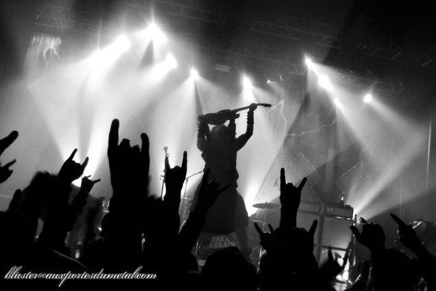 A 20h30, les lumières s'éteignent et Zakk Sabbath fait son entrée sur scène pendant que l'instrumental Supertzar résonne dans la salle. Joey Castillo (ex-Queens Of The Stone Age, ex-Danzig) s'asseoit derrière sa batterie, le bassiste Blasko (qui a notamment joué avec Ozzy) arrive... et le grand Zakk débarque enfin avec un kilt et une masse capillaire non négligeable (les lumières étant globalement disposées derrière le groupe, on verra plus ses cheveux qu'autre chose pendant une bonne partie du set). Armé de son fameux modèle Bullseye (mais violette et noire, cette fois-ci, aux couleurs de la pochette d'un certain Master Of Reality), il attaque avec le riff de Supernaut... et la fosse se soulève ! Quelle ambiance !