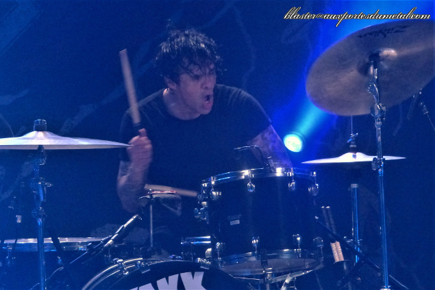 La soirée démarre aux alentours de dix-neuf heures avec non pas un groupe de première partie mais... un DJ. Ah oui ? Quelle "drôle" d'idée ! J'ai déjà fait l'expérience de ce genre d'apéritif dans le passé et je n'en suis jamais ressorti grisé. Ce soir ne fera pas vraiment exception. Le type est plutôt sympa, il se présente, nous dit qu'il vient de Birmingham, le berceau du Heavy donc (Black Sabbath et Judas Priest en sont originaires, pour ceux qui ne le sauraient pas) et nous propose de se chauffer avec quelques standards. Quand son set démarre, la salle est vide aux trois quarts. Et c'est parti pour une ribambelle de morceaux qui ne peuvent pas laisser un fan de metal totalement insensible... On commence avec For Whom The Bell Tolls, puis Holy Wars... The Punishment Due suivi de Screaming For Vengeance... du classique imparable. Entre temps, le DJ s'est ouvert une petite bouteille de vin, tranquille... et lève son gobelet de temps en temps (en l'honneur de tel ou tel musicien... il nous invite naturellement à en faire de même). We Are The Road Crew (on lève le gobelet pour Lemmy) s'invite à la fête... If You Want Blood (You've Got It) - RIP Bon Scott (et on relève le gobelet) également... Bref, du standard, on vous dit. Je ne vais pas vous faire toute la liste en détails, il y a eu quelques titres plus modernes dans des styles un peu différents (Gojira, Pantera, notamment) et un retour au Metal plus "ancestral" vers la fin avec du Madhouse, du Crazy Train, du TNT ou du Rainbow In The Dark. Le tout a quand même duré une bonne heure et ça fait toujours bizarre de voir un gars tout seul derrière sa platine en train d'agiter la tête et de boire des coups pendant qu'il lance telle ou telle piste. Le truc, c'est qu'on pourrait tout à fait avoir cette playlist qui sortirait des mêmes enceintes, sans personne sur scène, que ça ne changerait pas grand-chose (et c'est globalement ce qui se passe habituellement quand on attend que les groupes montent sur les planches). D'ailleurs, quand le DJ quitte la scène, la musique continue, comme quoi... Bref, tout cela n'a pas grand intérêt mais au moins, on ne pourra pas dire que la musique proposée était mauvaise, c'est toujours ça j'imagine.