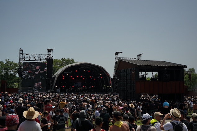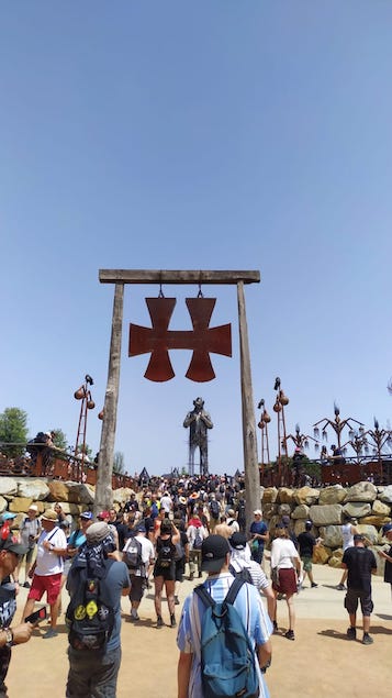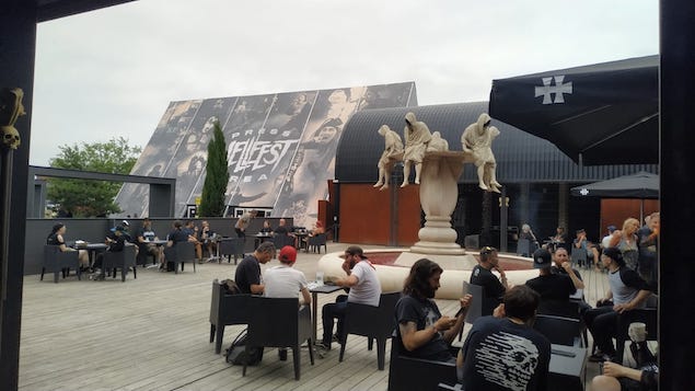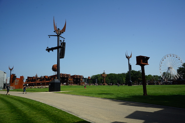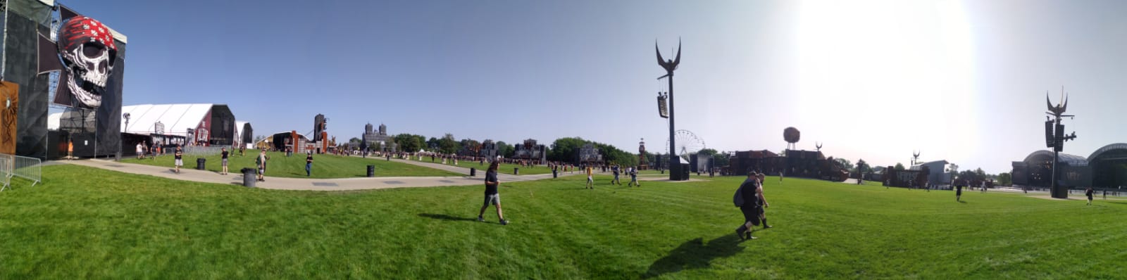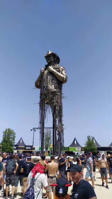 Les décos du festival sont toujours impressionnantes, surtout quand tout s’allume le soir (et que le soleil se cache enfin). Pour la première fois je réalise que le métal dont sont faites les palissades, les tables au VIP, etc, deviennent bouillantes quand elles sont irradiées de soleil. Impossible de s’appuyer à la palissade coté MainStage 2 l’après midi par exemple: trop chaud. La nouvelle statue de Lemmy est bien plus jolie (l’ancienne n’a pas résisté au temps apparemment).