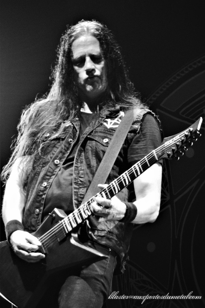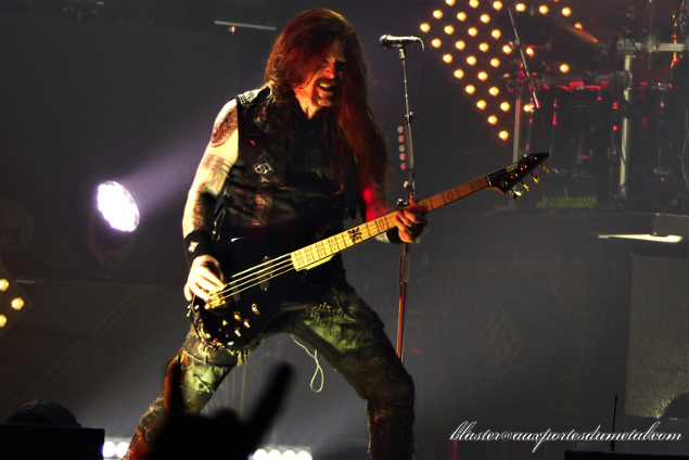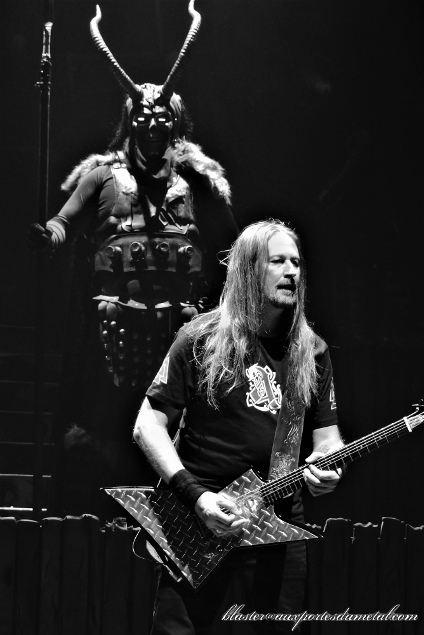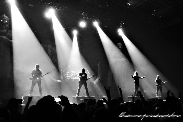 Amon Amarth se donne les moyens de ses ambitions mais n'en oublie pas la musique. C'est impressionnant de puissance. Vocalement, Hegg en impose toujours avec sa grosse voix en plus de sa bonhommie naturelle. Il a l'air vraiment sympa ce gars. Les grands titres s'enchainent à la perfection : Deceiver Of The Gods et son intro bien épique, The Pursuit Of Viking et son riff brise-nuque jusqu'au final Twilight Of The Thunder God et son démarrage dément avec ce cri si jouissif et ce refrain tellement martial. Entre temps, le groupe aura bu à notre santé (la merveilleusement heavy Raise Your Horns), nous aura rappelé nos premières fois (First Kill et son démarrage incroyable de vélocité), aura fait ramer (littéralement) la fosse dans un grand moment de communion. Une amie m'a au passage fait remarquer l'étonnante connexion entre cette séquence du "public qui rame" et le Paquito cher au peuple basque (et indispensable à toute soirée digne de ce nom !). A croire que dans leur grande traversée, ne se contentant pas de la seule Amérique, les Vikings avaient dû faire quelques escales au pays du piment d'Espelette (il s'agit là d'une pure spéculation théorique de l'auteur de ces lignes).
