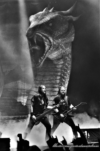 Pour jouer le rabat-joie de service, j'aurais bien pris un petit As Loke Falls mais Amon Amarth a désormais une telle discographie à disposition qu'il faut bien faire des choix. J'ai aussi trouvé que les titres du dernier album passaient un chouilla moins bien que les plus anciens ce qui ne me fait pas honneur car cela commence à sonner comme un vieux c.. adepte du « c’était mieux avant », ce qui n’est vraiment pas le cas, loin de là. Si je trouve le groupe moins percutant en studio depuis l'excellent Jomsviking, que leur musique ressemble de plus en plus à du Maiden survitaminé, il n'en reste pas moins que sur scène, l'élévation de la qualité proposée est admirable, surtout que le groupe partait déjà d'un point très haut.