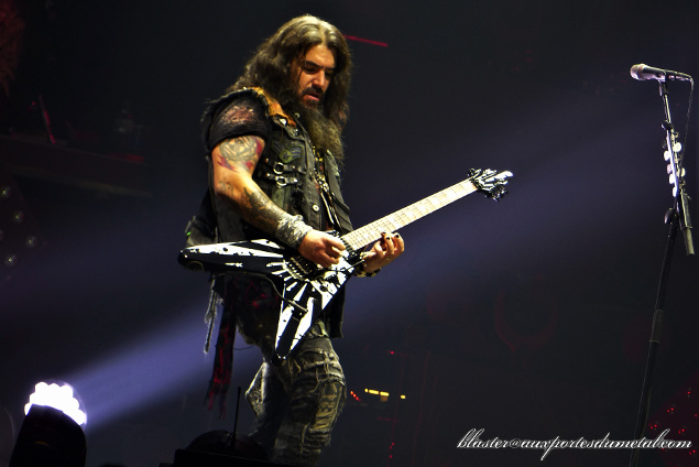 C'est la première fois que Blast les voit et intérieurement je souris en sachant qu'il va se prendre un sacré show ! De nouveau, un grand rideau masque la scène. Bien moins fracassante que celle d'Amon Amarth, le démarrage est un peu « léger ». Robb Flynn attaque en alpaguant le public. Le déclenchement de Become The Firestorm va rapidement remettre les choses au clair. Le son est monumental (Machine Head quoi !!) et ça va vite, très vite. Le groove / thrash des Américains (et moitié anglo-polonais désormais) fait encore des ravages sur un public qui va se régaler. Petite aparté rapide sur le son que certaines personnes ont trouvé un peu dégradé par moments. De ma position, devant sur la gauche, c'était nickel. Le Zénith reste une salle au son contesté, cela n'a a priori pas changé et c’est toujours aussi dommageable.