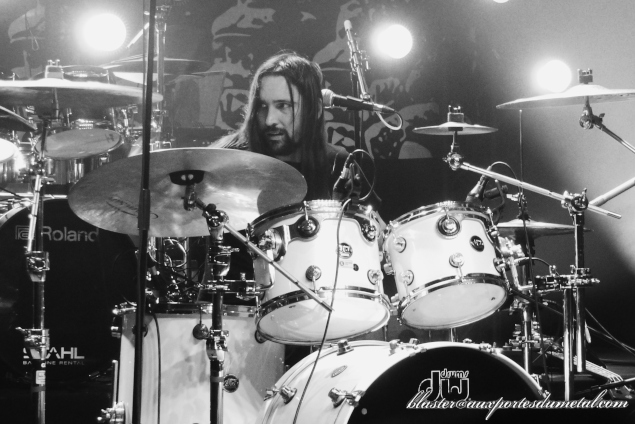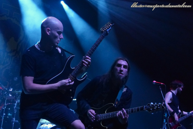 Les titres sont plutôt entraînants mais les lignes de chant manquent un peu d'accroche me semble-t-il... Cependant, les musiciens savent jouer, ont l'air de s'éclater et certaines compos speedées s'avèrent efficaces. Ils nous livrent en avant-première la chanson titre de leur prochain album : From Disaster. Sur la dernière chanson de la soirée, guitariste et bassiste passent leur temps à courir d'un côté de la scène à l'autre et se croisent très régulièrement... jusqu'à ce que les musiciens de Geoff Tate s'invitent sur scène pour les entarter (sorte de bizutage de fin de tournée, vraisemblablement). Enfin, il ne s'agit pas vraiment de tarte mais plutôt d'assiette en carton remplie de mousse à raser (c'est en tout cas l'aspect que ça a). Les valeureux Australiens ne se laissent pas démonter et continuent de s'exécuter jusqu'au bout. Un show sympathique et remuant avec une dose non négligeable de bonne humeur dedans. Je ne suis pas devenu fan mais il y a pire façon de débuter une soirée. Darker Half quitte donc la scène du Forum sous des applaudissements bien mérités, ils ont carrément mouillé la chemise.