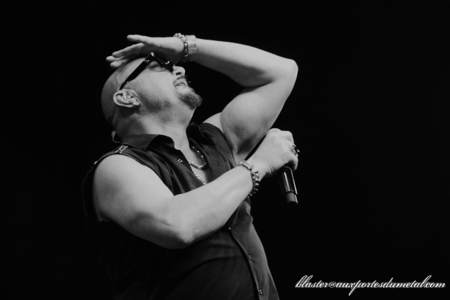 Quand les musiciens de Geoff Tate arrivent sur scène, l'ambiance se réchauffe grandement. On a - sur bande - l'intro I Remember Now du fameux disque qui fête ses trente-cinq ans cette année, puis l'instrumental Anarchy-X joué par de jeunes gars visiblement motivés et contents d'être là... puis Tate débarque pour entonner l'hymne Revolution Calling. Le son est bon, Geoff tout de noir vêtu (avec lunettes de soleil en bonus) est charismatique et dès les premières notes, le public laisse éclater sa joie. Quel plaisir d'entendre le début de ce chef-d'œuvre (dont je ne suis toujours pas lassé depuis que mes oreilles sont tombées dessus, il y a environ trente-deux ans de cela)...